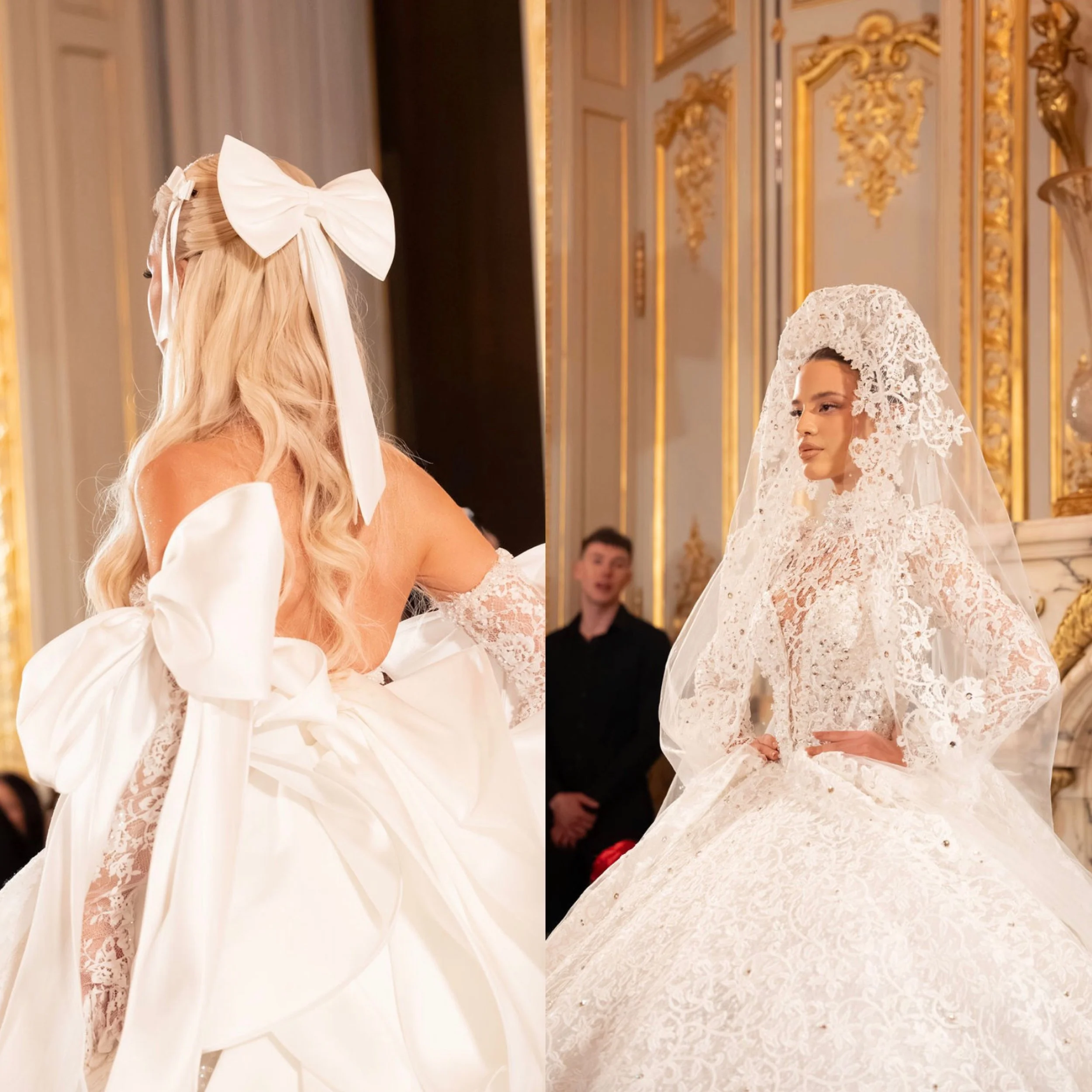 Le défilé a ainsi révélé un univers où robes couture, coiffures sculpturales et parures spectaculaires se répondent avec harmonie, dessinant une vision du bridal à la fois romantique, théâtrale et profondément contemporaine.